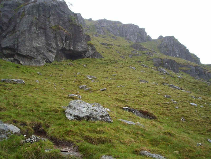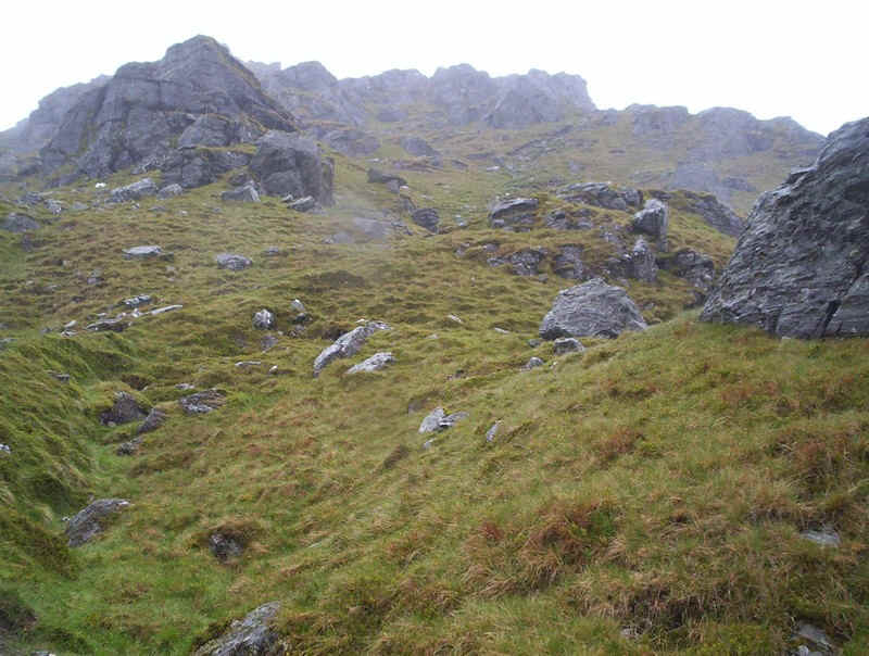 Further up more crags appear and...