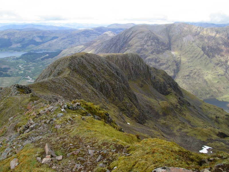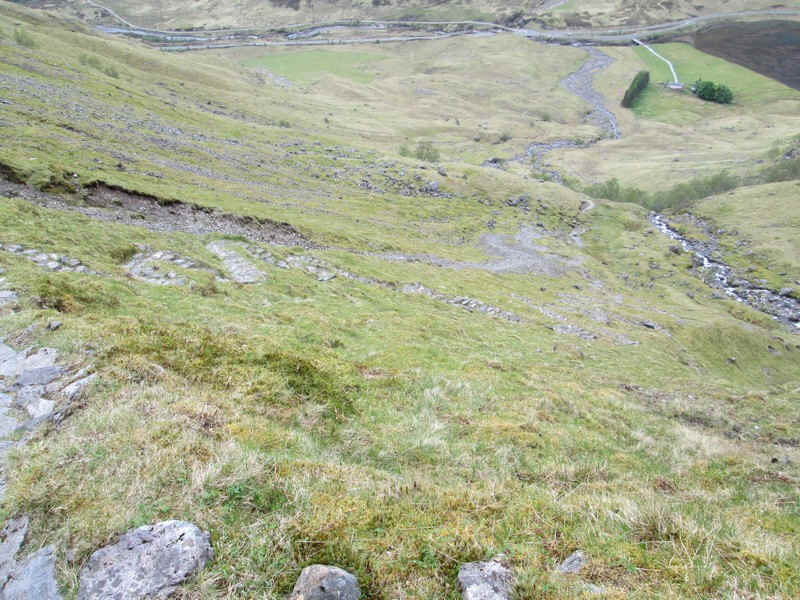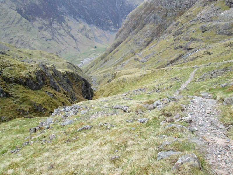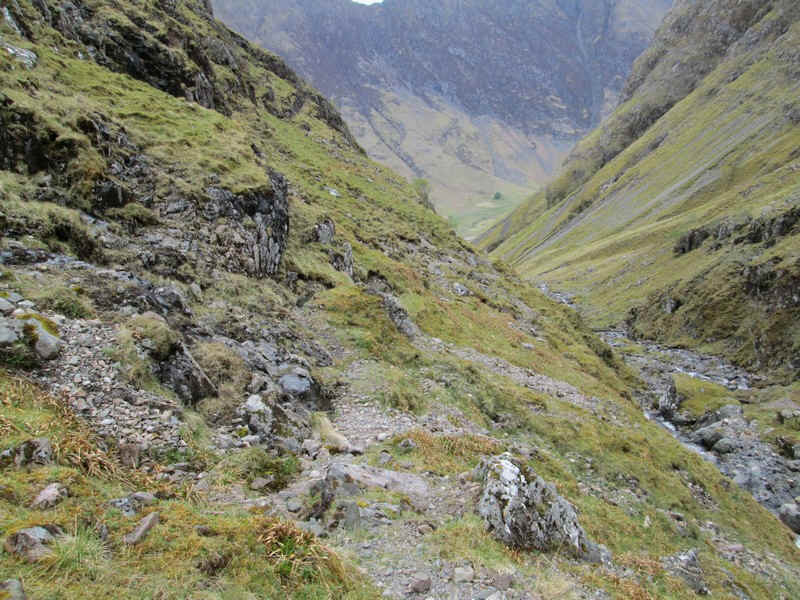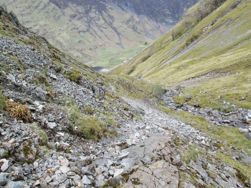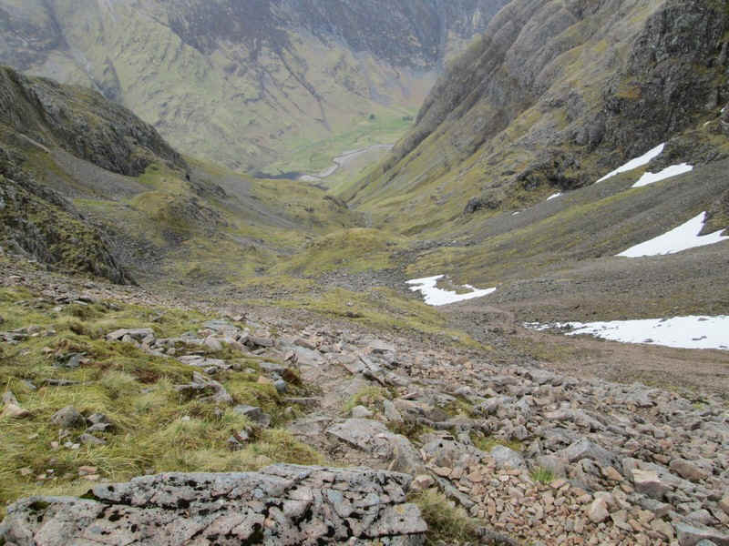 Before returning downhill I decided to walk out on to An-t-Sron to see if there was a way of this ridge into Glen Coe rather than using the way I'd come up but decided to return by my outward route. (down)