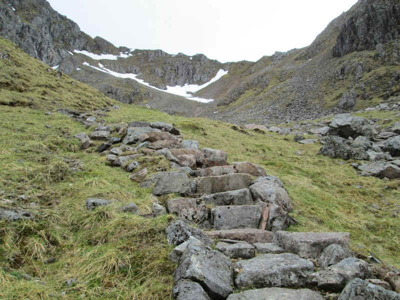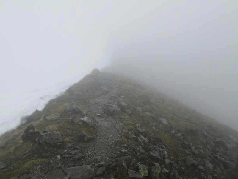 In places there's a path across a narrow ridge which is clearly a little exposed. In the mist and with great banks of snow on the north side this wasn't as apparent as I suspect it would be normally. (up)