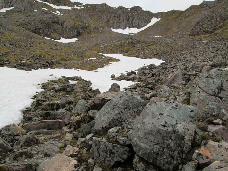 .....as it heads for an enormous area of scree at the head of Coire nam Beithach