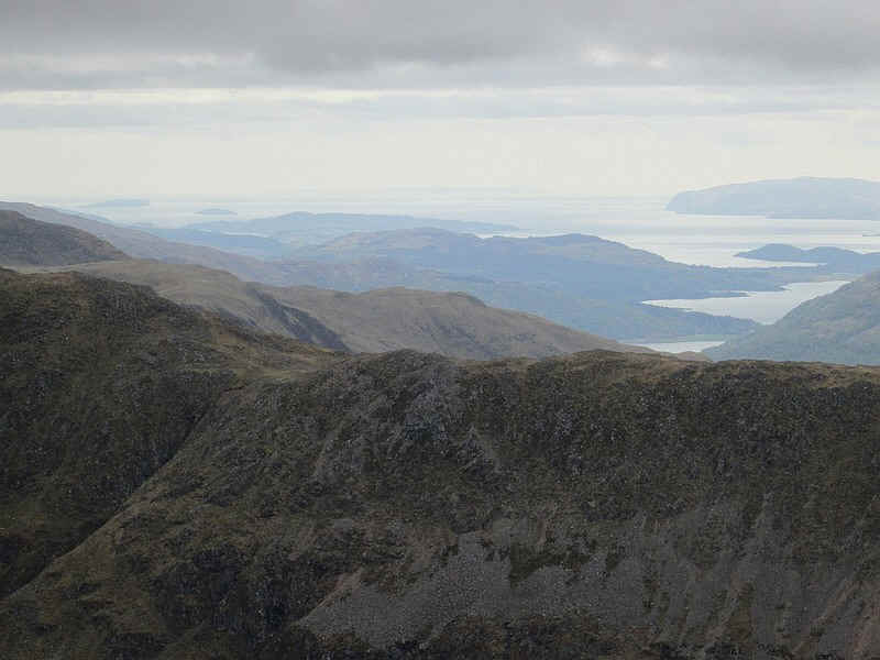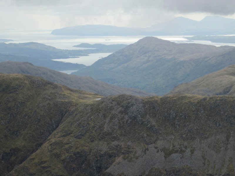 Having resigned myself to no views it was delightful when as I dropped down from the summit of Stob Coire nam Beith the clouds lifted slightly giving some extensive views. Just visible on the horizon is the island of Colonsay with Lismore in the centre, whilst the cliffs at the south of Mull are clearly visible.