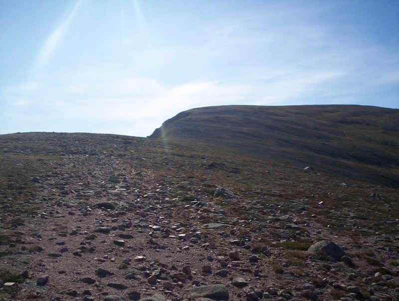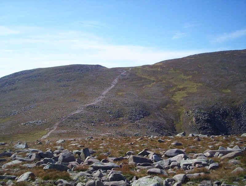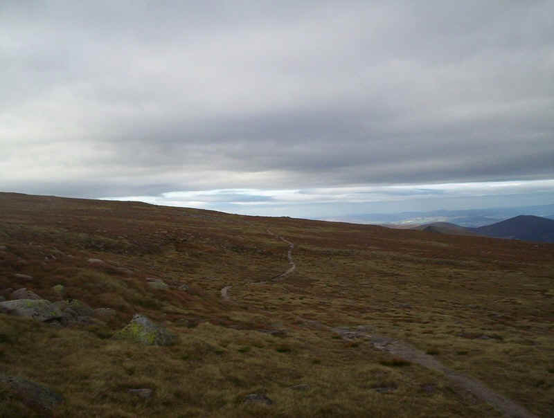 Dropping down to the col between Sron na Lairige and Braeriach a broad, easily graded but eroded path led upwards...