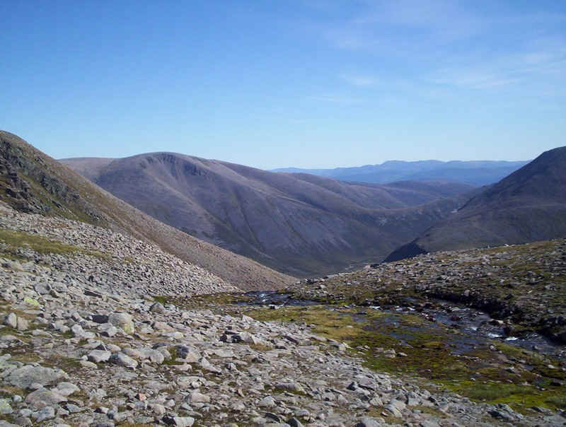.....and down into the corrie with the Allt a'Gharbh-choire leading to the River Dee.