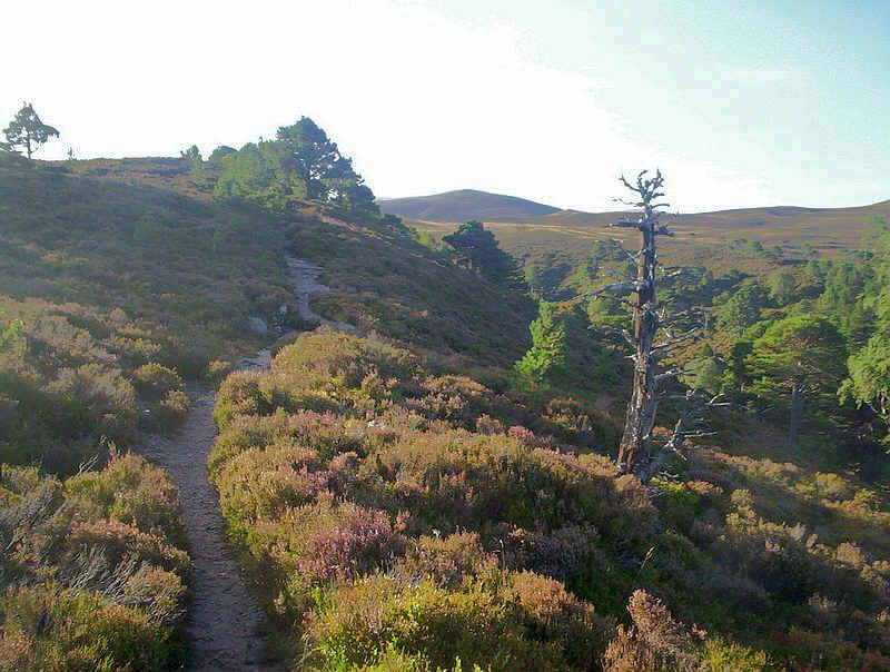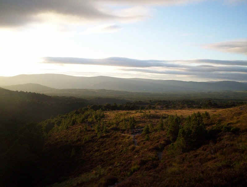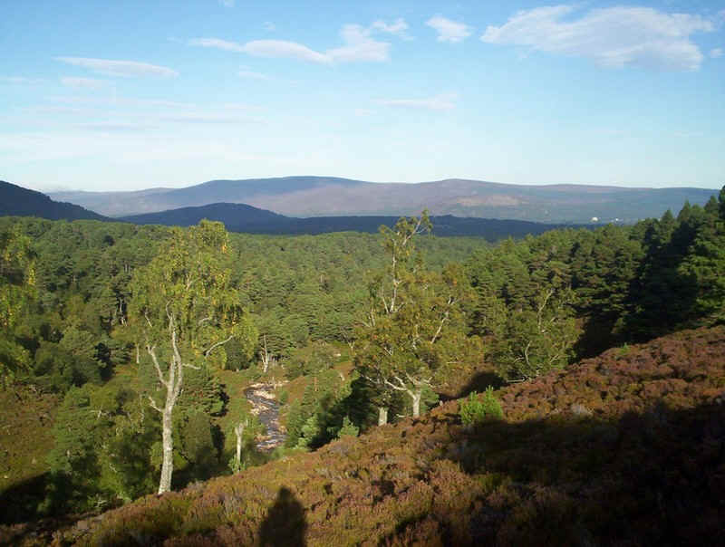 By now the river is some distance below and the trees of the forest stretch into the distance with Aviemore just in view.
