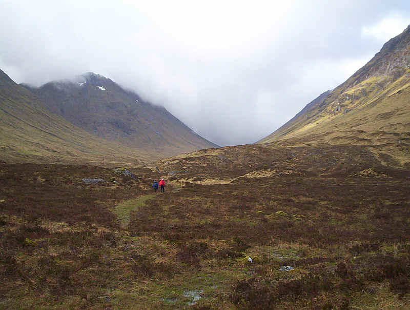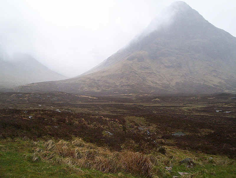 A return to Glen Coe in May 2009 at long last gave me better weather and the prospect of climbing the two Buachaille Etive hills. An extremely courteous and efficient Citylink driver deposited me at the car park just beyond Altnafeadh next to the signpost which states "Lairig Gartain to Glen Etive".