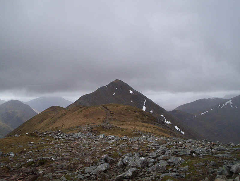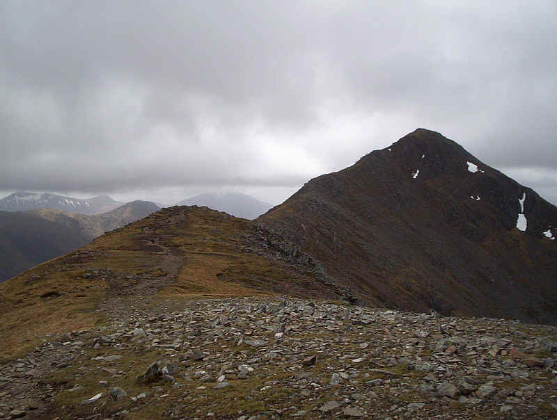 At the bealach there's a choice to be made; which summit to climb first. This is the view towards the minor top on the way to Stob Dubh.....