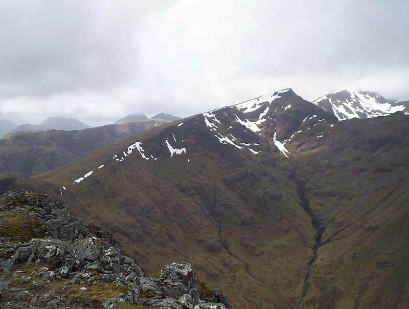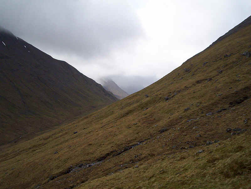 The view to the north west with Stob Coire Sgreamhach and beyond, just shrouded in cloud, is Bidean nam Bian, at 1150m, the highest hill in Glen Coe