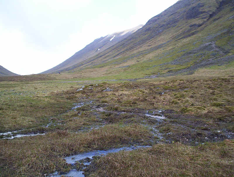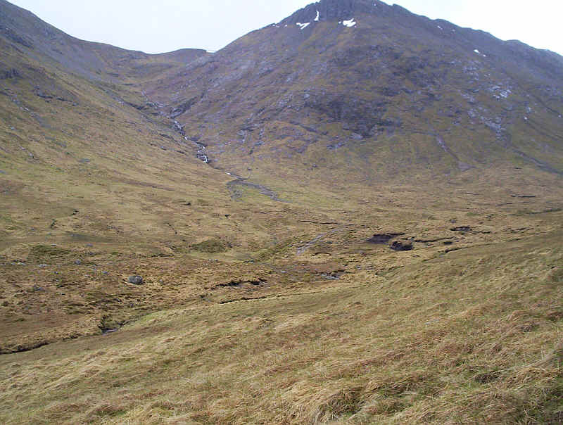 After negotiating the rather boggy area near the stream, which flows out of the Lochain na Fola into the River Coupall, much firmer ground was followed up the valley.