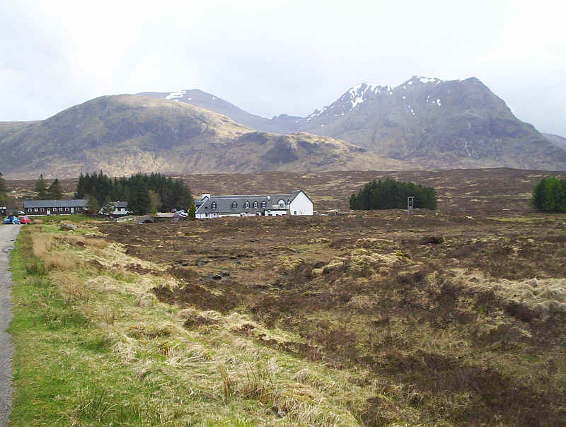 Bed for the night was at the Kingshouse Hotel. Beyond the last of the winter's snow can be seen on the ski slopes of Meall a' Bhuiridh with Creise on the right.