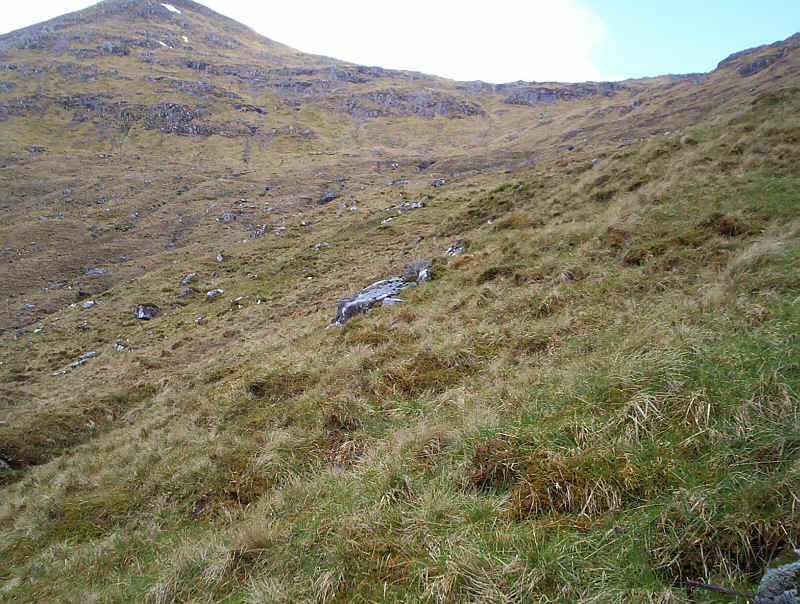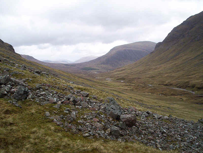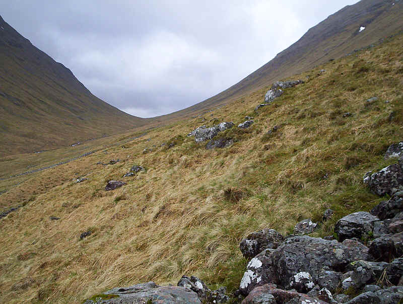 Below I'm looking back down the valley with the Corbett Beinn a' Chrulaiste to the right. There are a lot of quite stony sections to negotiate on the climb but nothing of any real difficulty.
