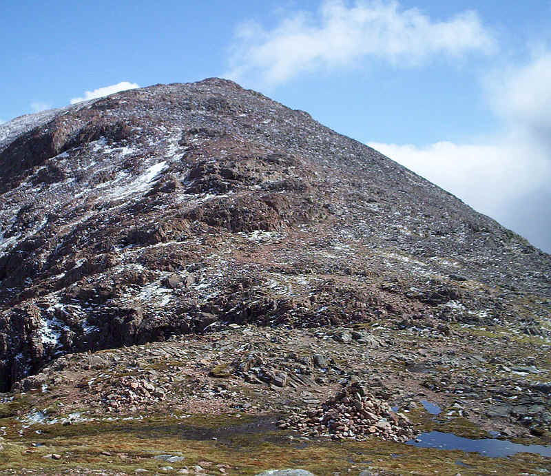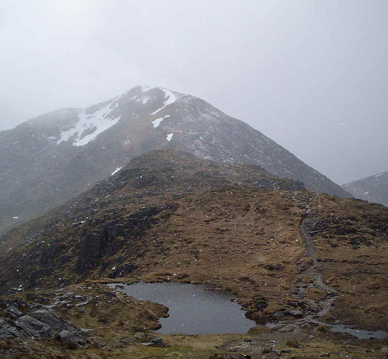 I'd planned to climb the hill on three occasions before I succeeded in May 2009. The first time a road accident had closed the A82 whilst on the second occasion the cloud base was down almost to the valley floor and there seemed little point in attempting it. The third attempt was stopped by the amount of water coming down from the Coire na Tulaich.