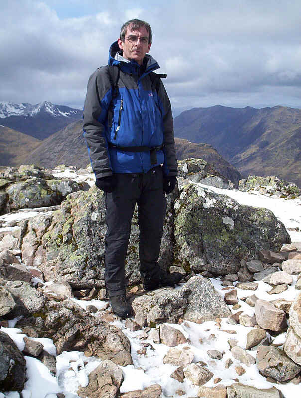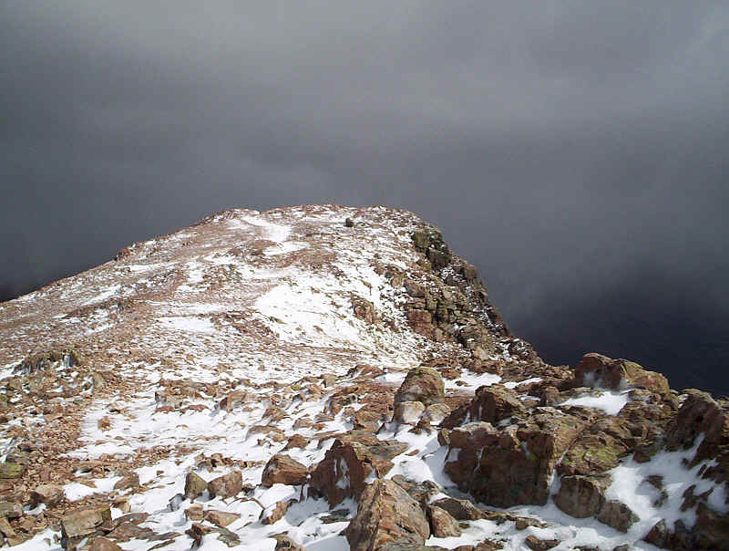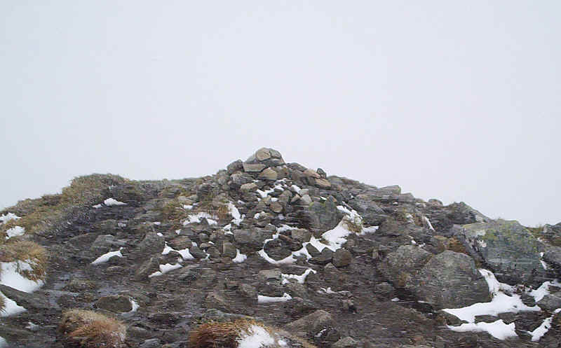 The summit of Stob Dearg had a slight covering of snow but, sadly, the view over Rannoch Moor was obscured by cloud.
