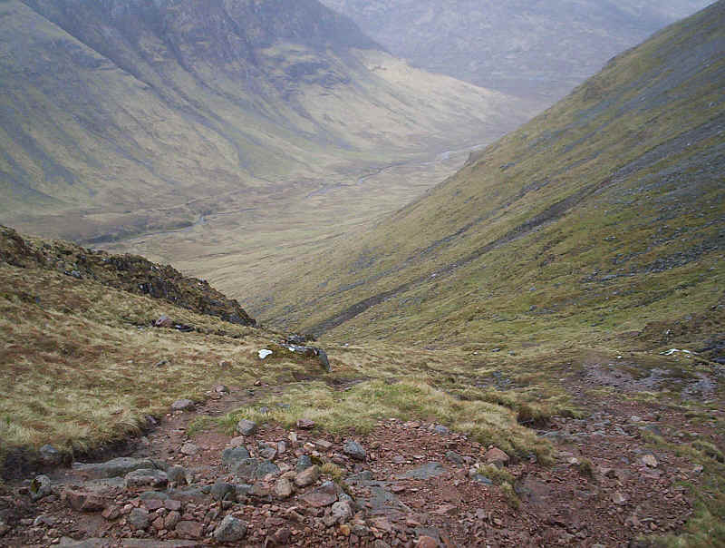 Further up the path starts to zig zag to gain height. Looking back across to the Mamores and the Blackwater Reservoir the views open up.