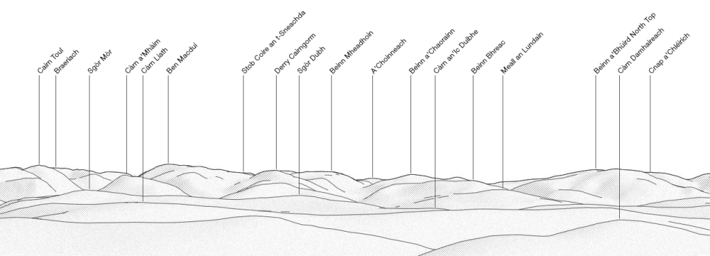 Over to the north Ben a'Bhuird is in the centre.