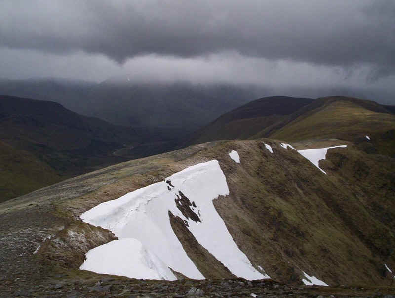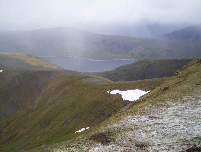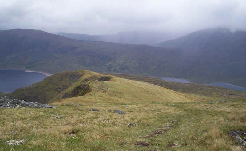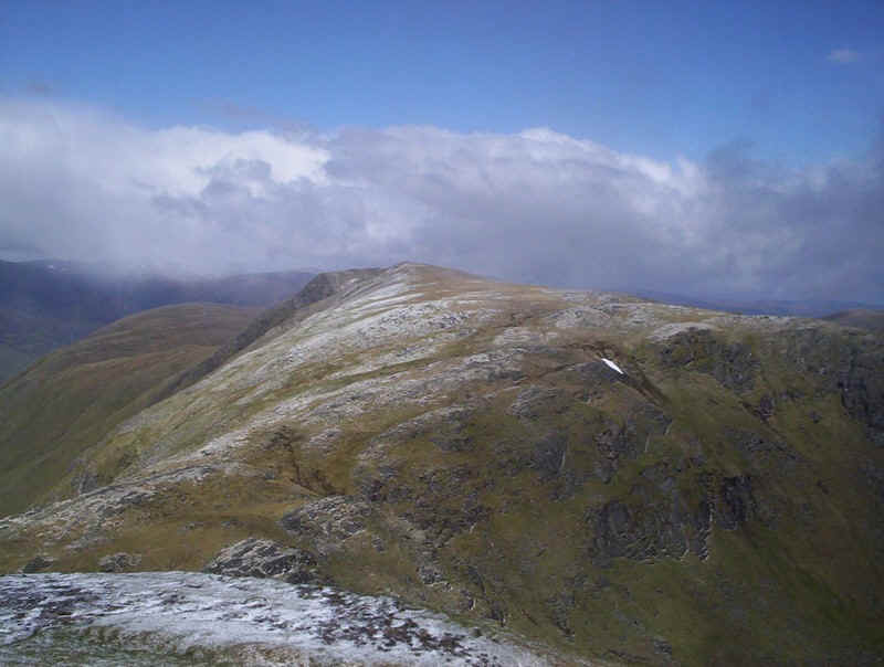 Looking back down Meall Breac's ridge to Loch Cluanie.