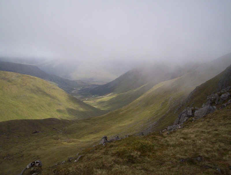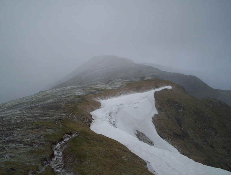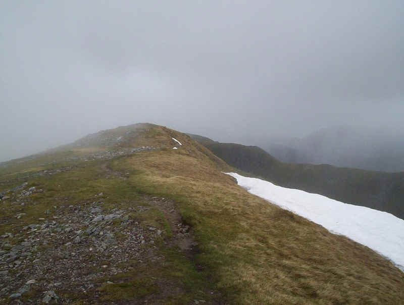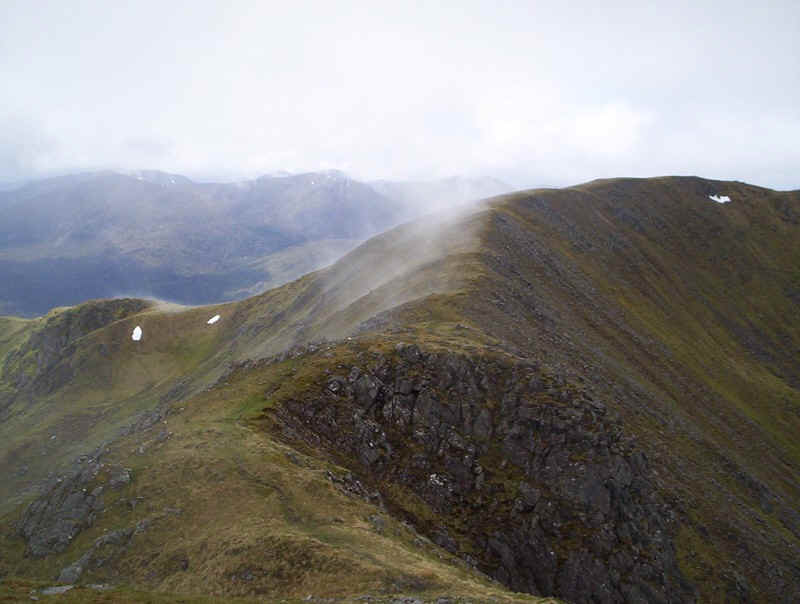 And then the mist cleared slightly to allow this photo looking back to Droichaid an Tuill Easaich and the ridge down to Meall Breac
