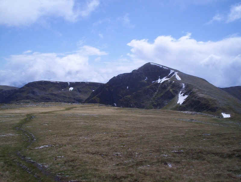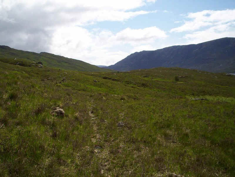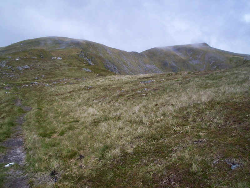 The path falls to a dip at 914m before the climb to Sail Chaorainn.