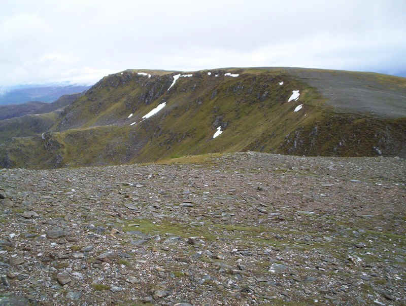 The final climb to Sgurr nan Conbhairean is over stony ground with no obvious path but as long as you stay away from the cliffs there are no problems.