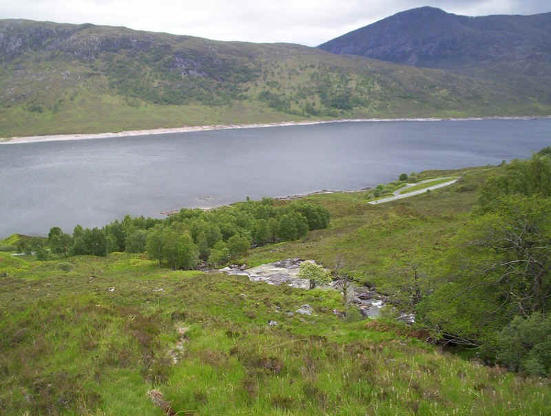 Initially, I had thought of returning down the stalkers path to Lundie but I realised that if I headed across towards the Allt Coire nan Clach I would reach the path that is shown running down by the side of the burn. I'd then end up near the supposed "ford" where I could get straight down onto the main road. I simply left the path and headed down hill across grass, and the occasional steep section heading all the time towards Loch Cluanie.
