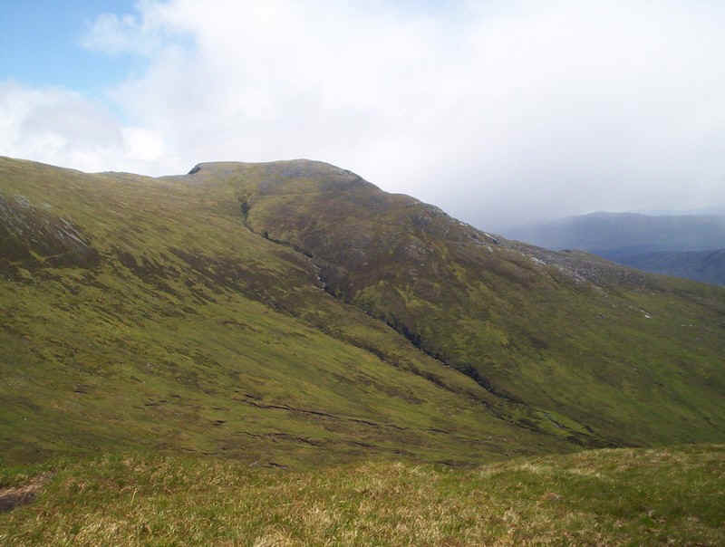 After the bealach there's a slight rise to Creag a'Chaorainn with it's summit over to the left of the long gently sloping ridge.