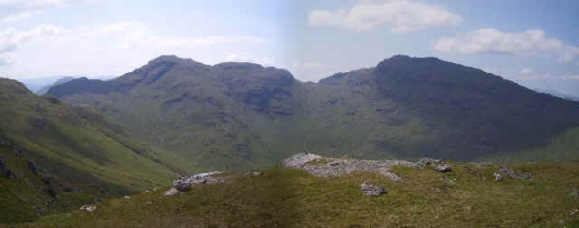A panoramic view of Beinn a' Chroin and An Caisteal.