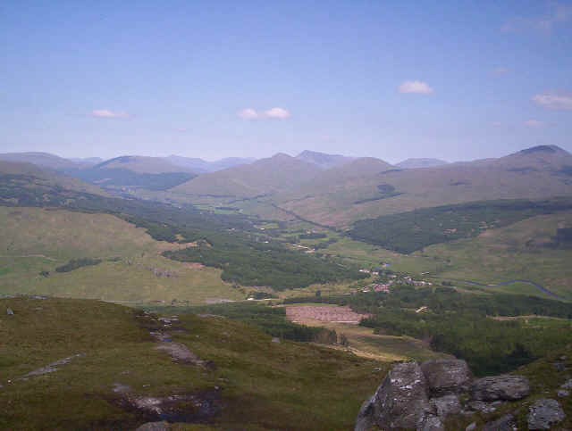 Looking down over Crianlarich and Strath Fillan.