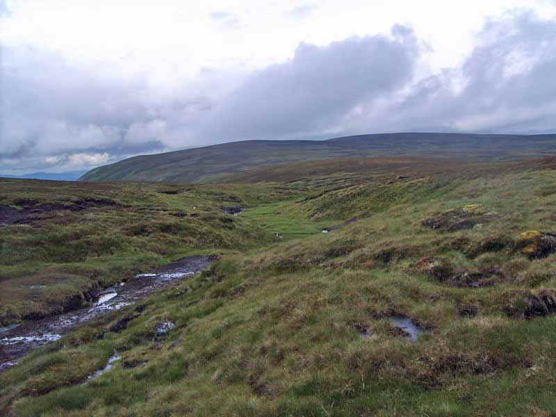 Heading due east from Carn na Caim I dropped down over the featureless moor...