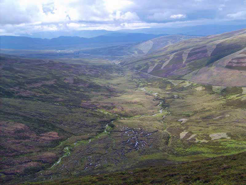 I'd already climbed the 4 Munros on the western side of the Drummochter Pass and decided that the three on the eastern side of the valley were candidates for climbing together in one very long day from Dalwhinnie station. Perhaps the very wet weather experienced in July 2012 wasn't perhaps the best time to do this but cheap tickets and a very cheap room at the Salutation Hotel in Perth encouraged me to try to clear this 3 hills.