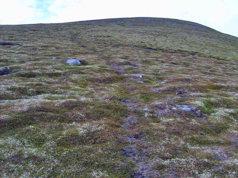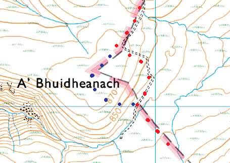 Once across the stream a faint path led uphill towards A'Bhuidheanach Mhor. When it faded I used my GPS tracker to walk directly towards the summit of A'Bhuidheanach Bheag.