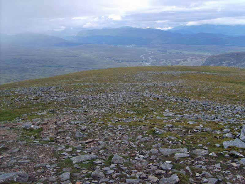......the rather insignificant cairn at the 941m summit of Carn na Caim. The walk up to this point had taken about three hours from leaving the A9 and about three and three quarter hours from Dalwhinnie.