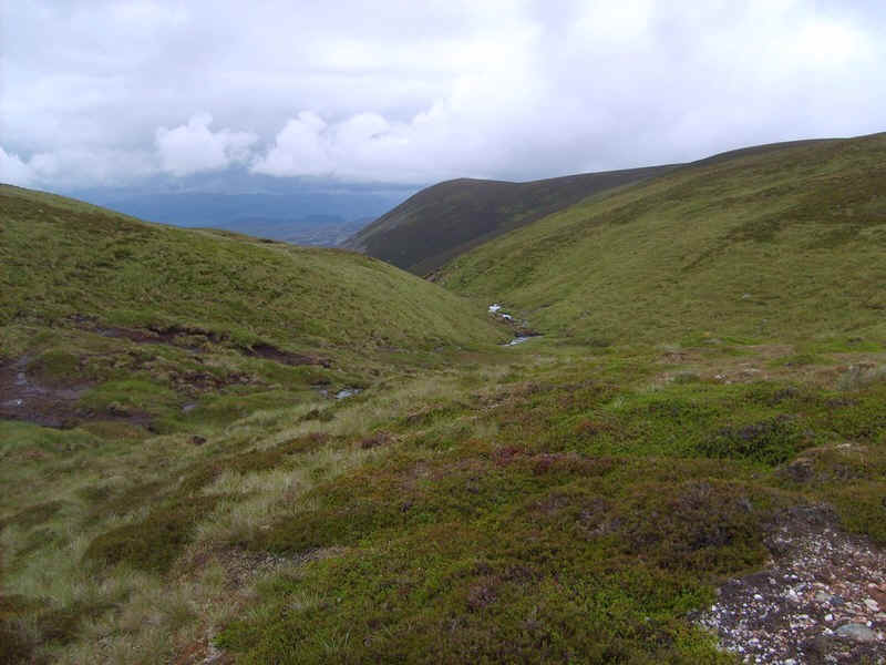 .....where the broad track comes down to near a stream at the bealach at the head of Coire Chuirn. The problem is that not all the tracks are marked, even on the 1:25000 OS map and I'd not noticed the junction.
