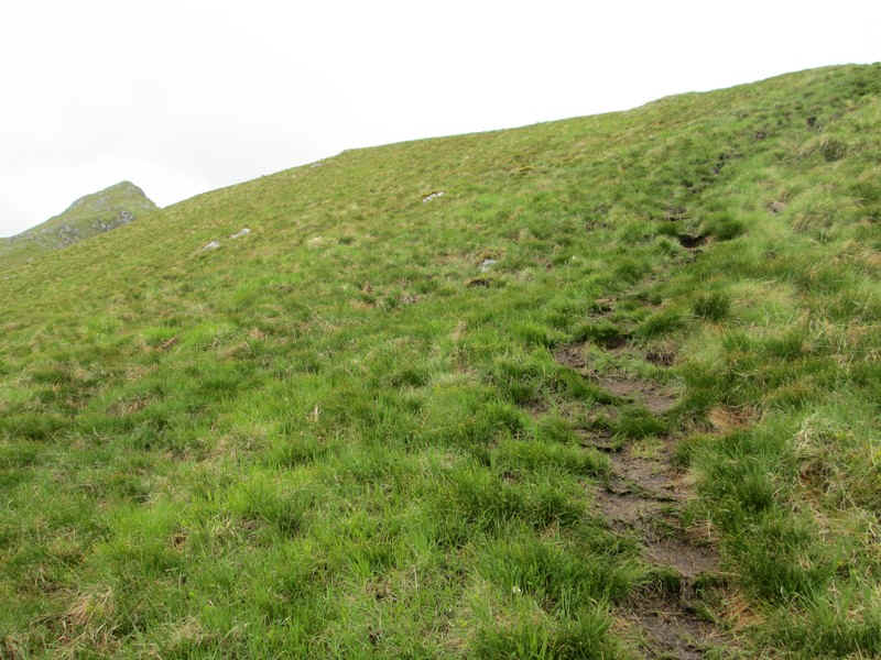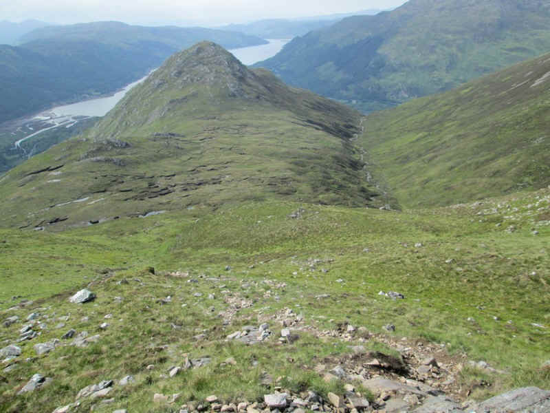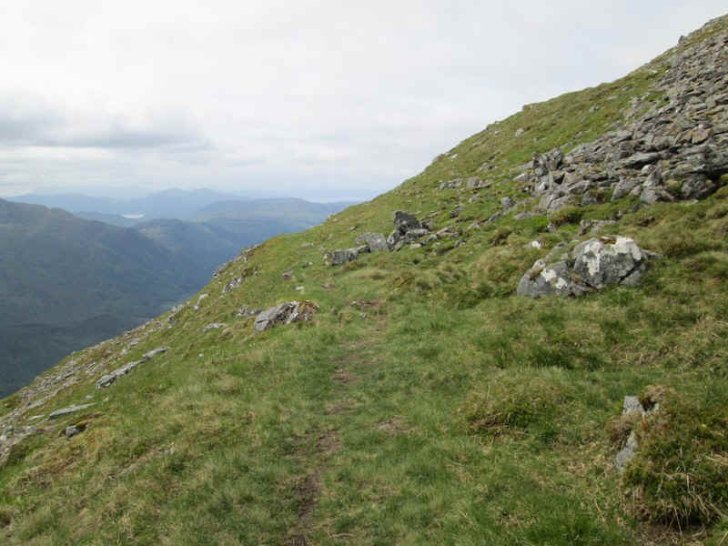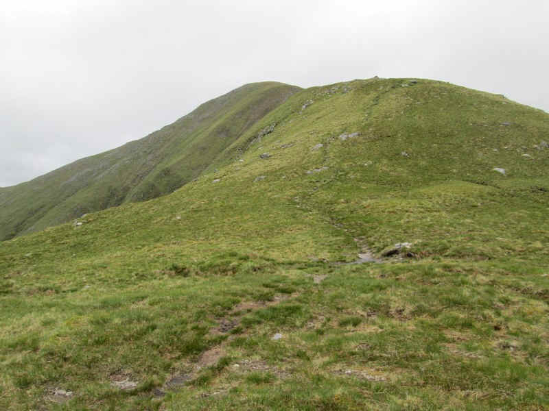 The track drops down to a depression just below Beinn Buidhe's summit...