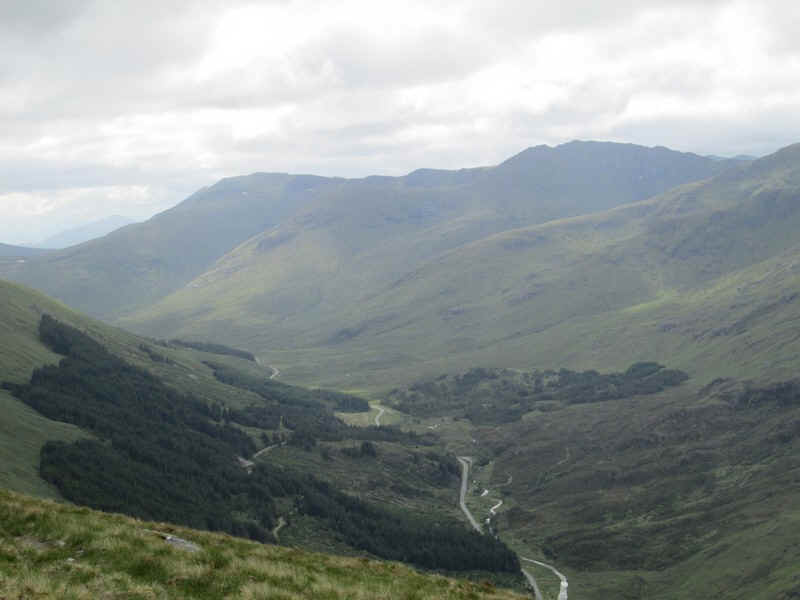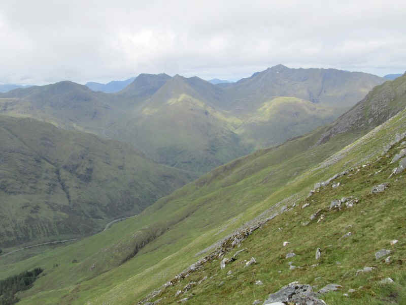 From the bealach this is looking east up Glen Shiel with the hills of the South Glen Shiel ridge beyond.