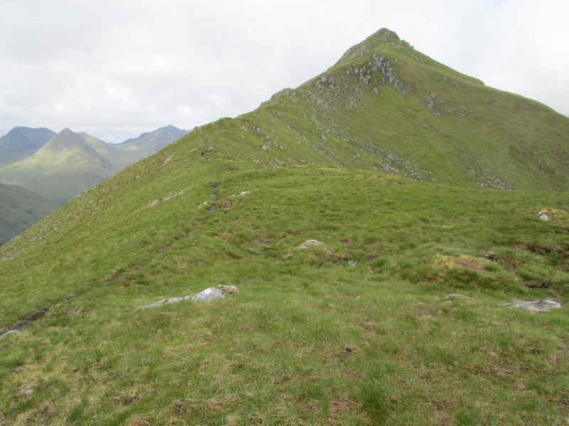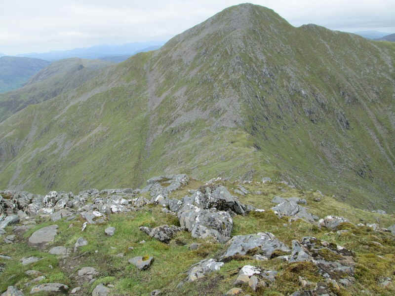 Beyond the summit the first Munro of the day comes into view, Sgurr na Ciste Duibhe.