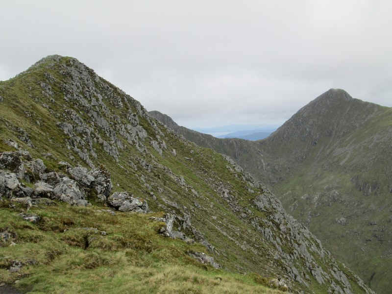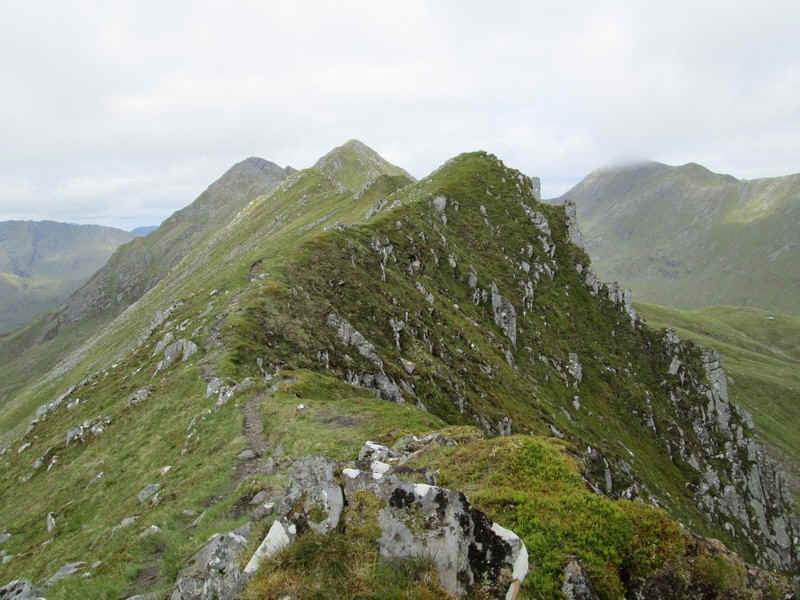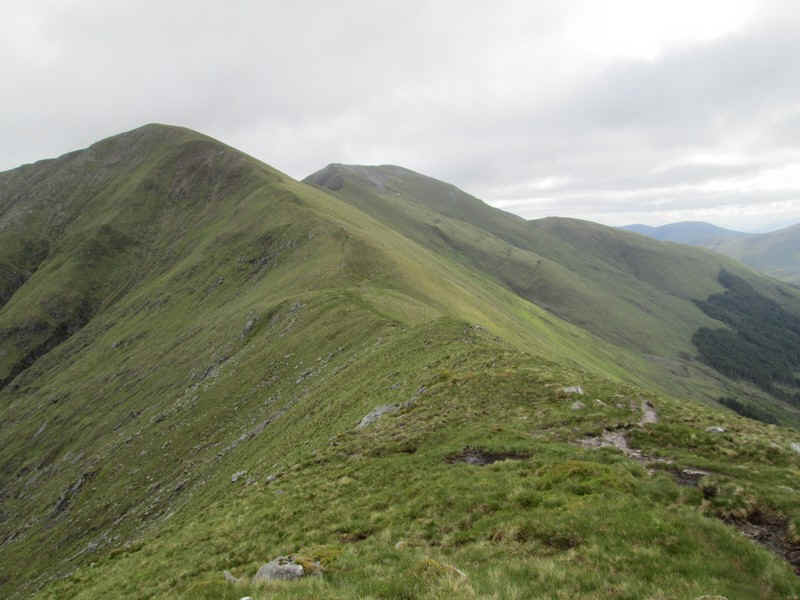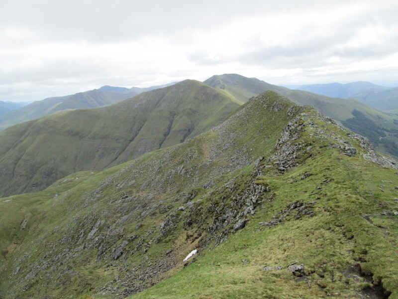 Looking back down Beinn Odhar's ridge to Saileag and Sgurr a Bhealacih Dheirg.