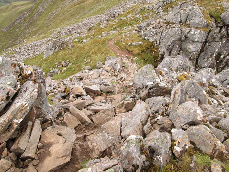 The path finds an easy course down to the bealach..