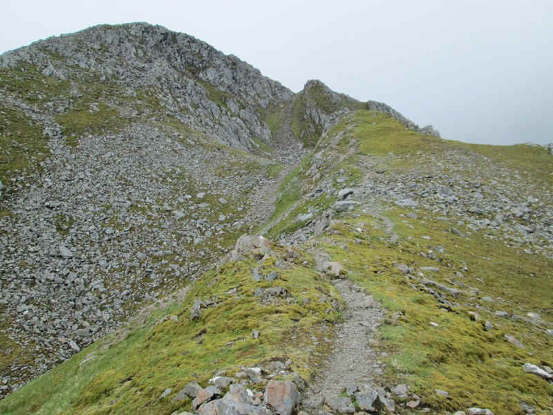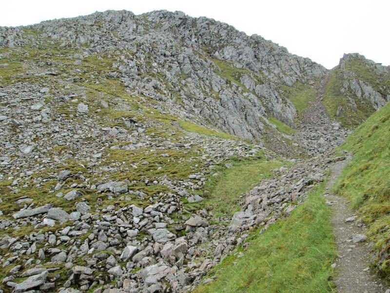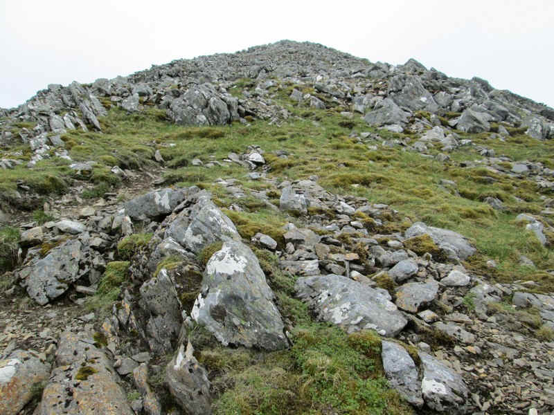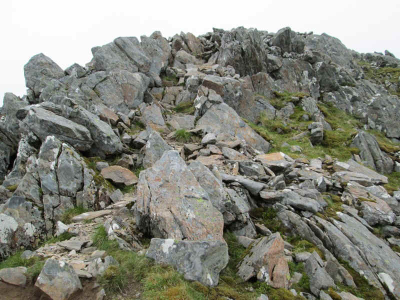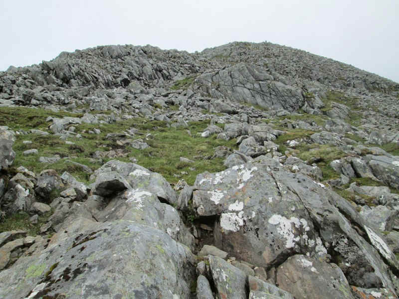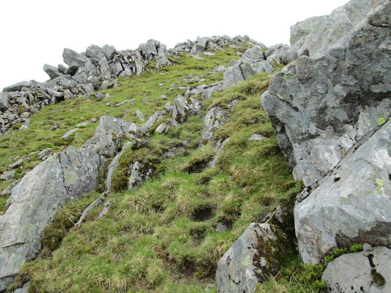 From the bealach the initial climb is through rocks..