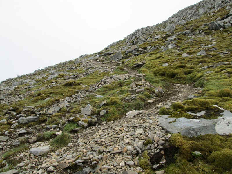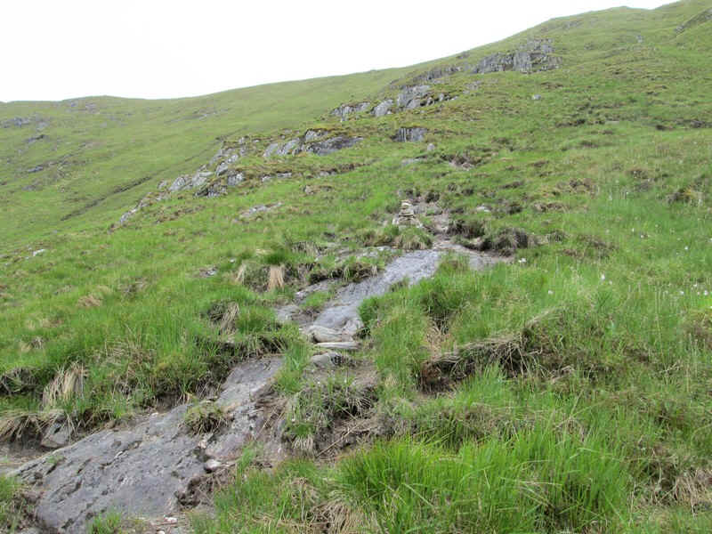 The photos below give an idea of the climb to the bealach which is alternately, badly eroded, wet, slippy and rocky.