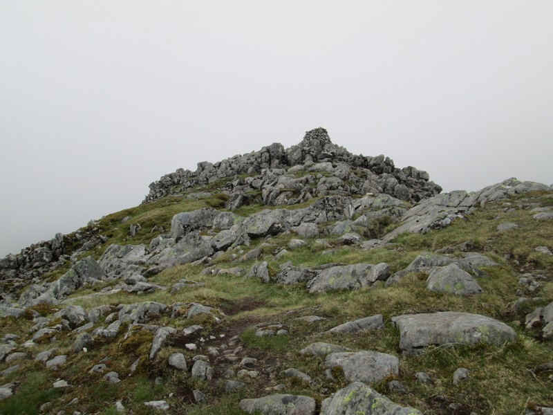 The summit cairn of Sgurr na Ciste Duibh is at 1027m. (12:21)