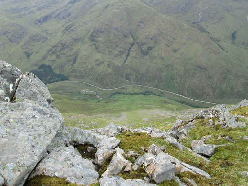 A thousand metres below is the A87 down in Glen Shiel.