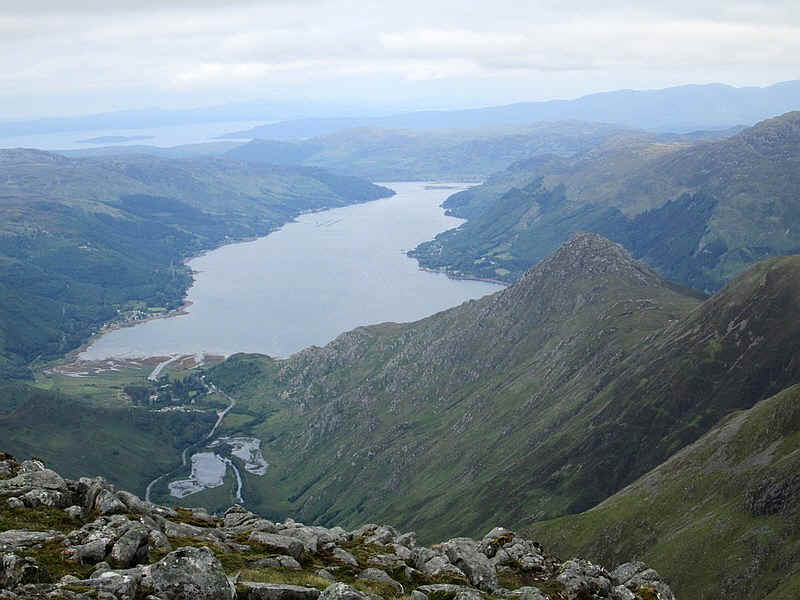 Looking down to Loch Duich with Shiel Bridge at the head of the loch.