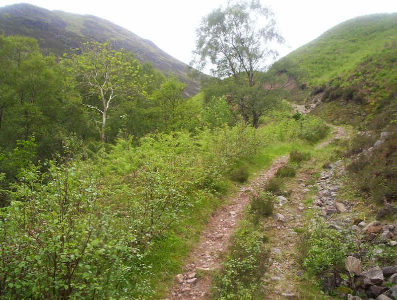 The path climbs steadily above the Allt Glas Dhoire stream....