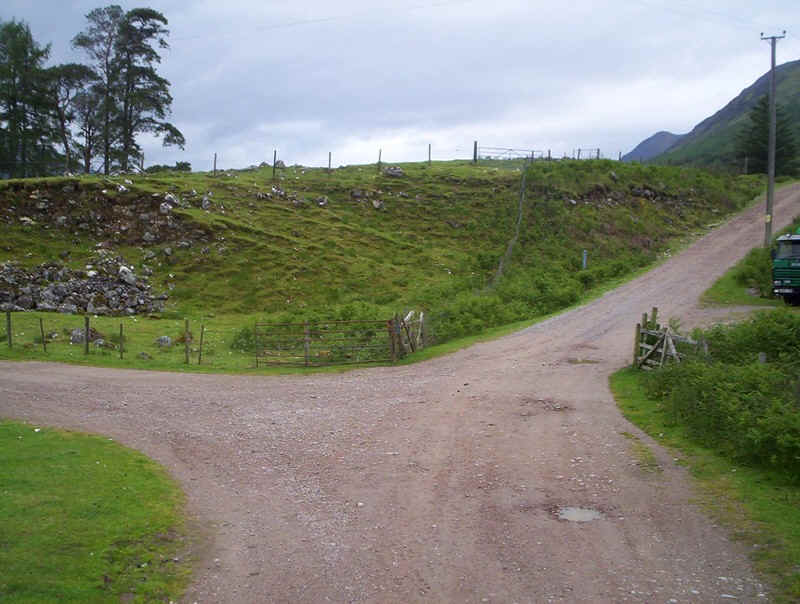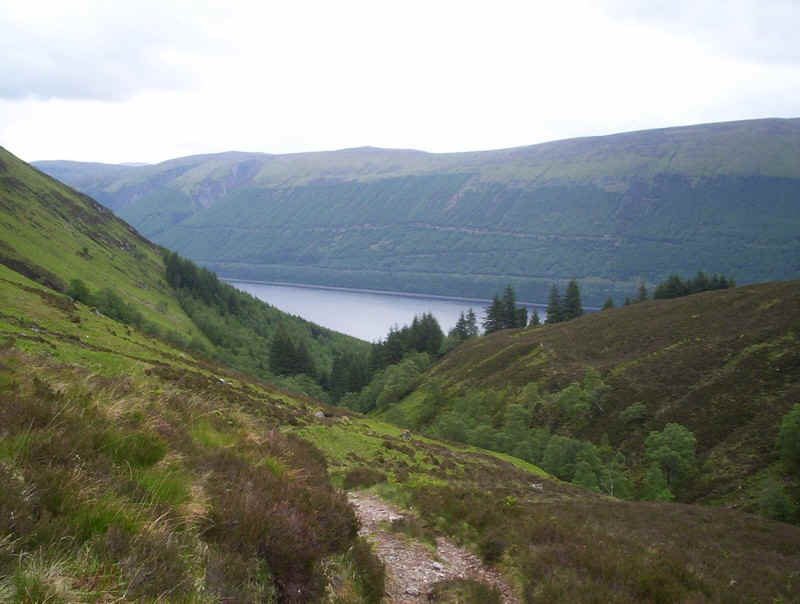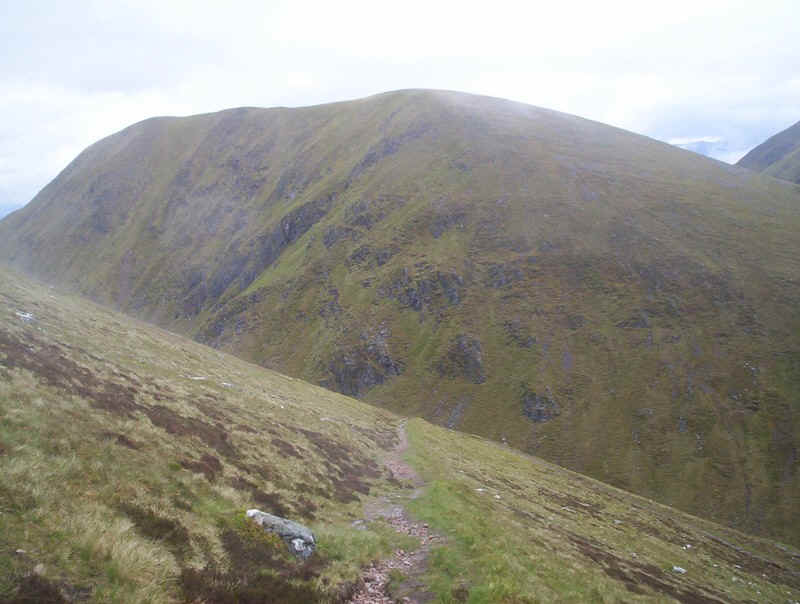 ...the path contours around the slopes of Meall Dubh, with Meall na Teanga visible beyond.