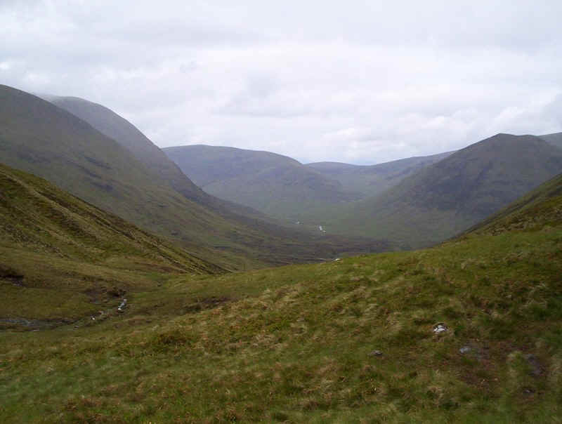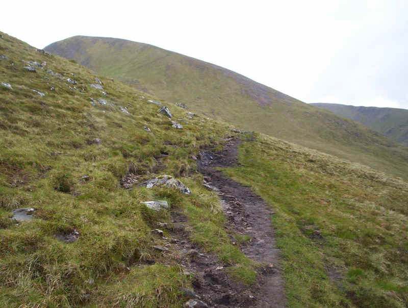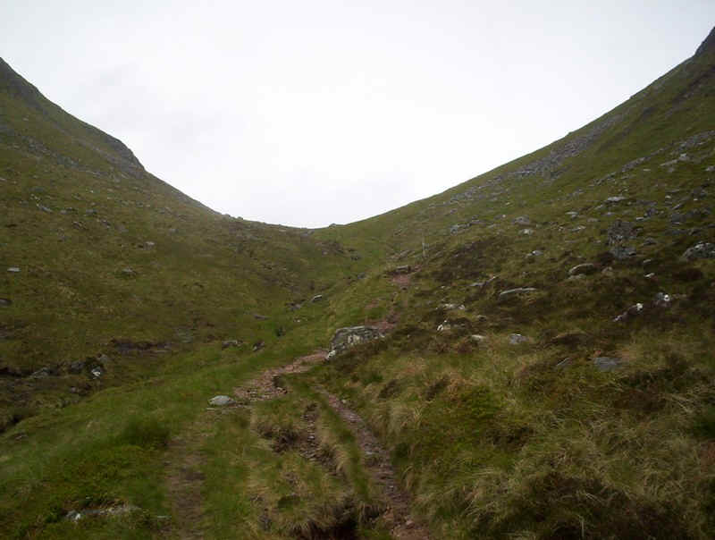 The path continues across the col between Meall Dubh and Meall na Teanga before heading upwards.....