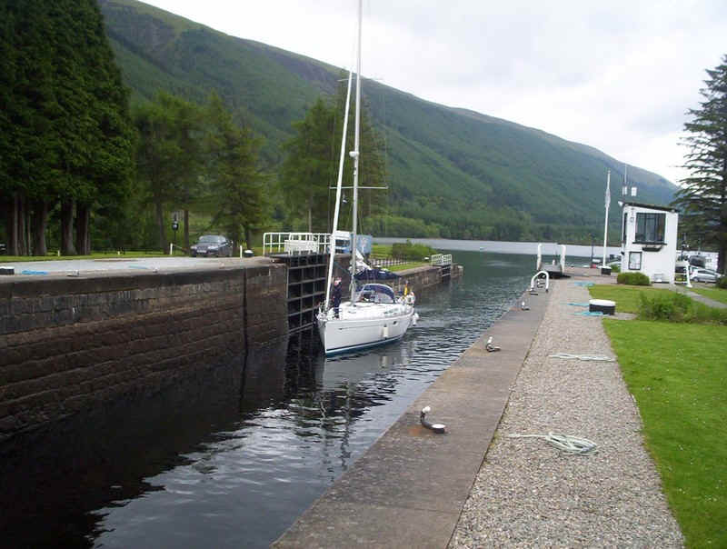 Whilst crossing the lock gates a yacht arrives from Loch Lochy.