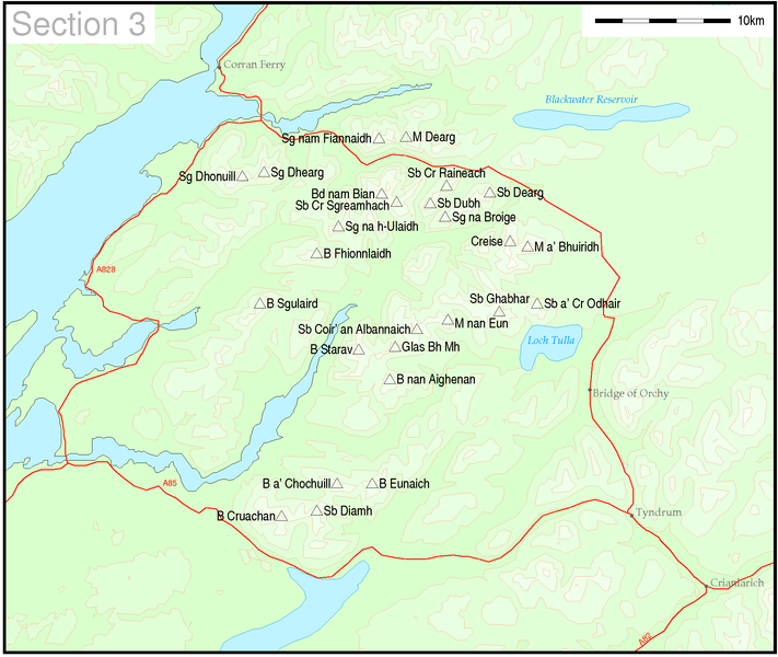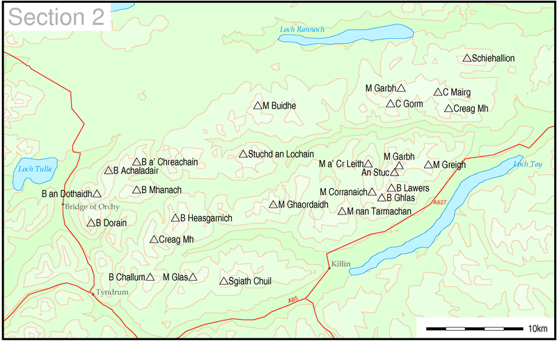 Since the postbuses no longer run this hill is slightly more difficult to reach. Citylink buses do use this route but are unlikely to be prepared to stop at this point. It is 3.5km along the A85 from Crianlarich station to Ben More farm but there are wide verges and it is a safe road to walk along
