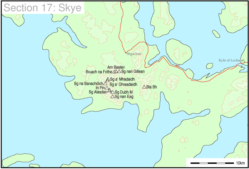 All of these hills are accessed from Glenbrittle. Unfortunately the summer only bus from Portree no longer appears to be running. The nearest bus stop now is at Carbost which is eight miles away.