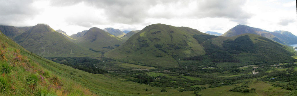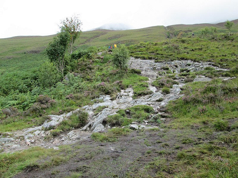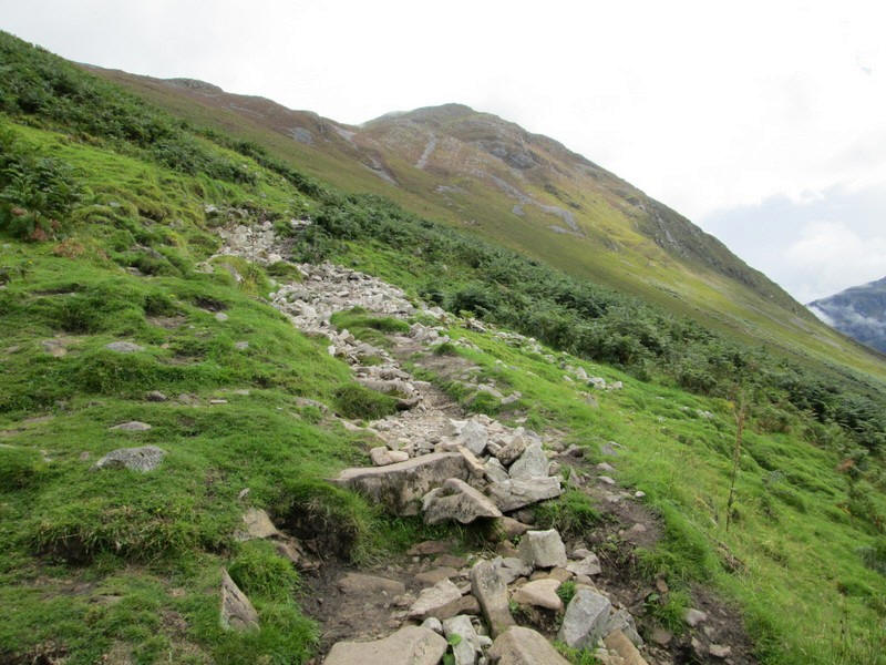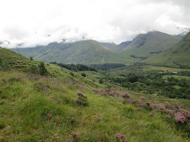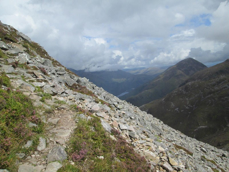 .....with the steepness of the hillside being obvious here. In the distance is the head of Loch Leven and the pointed summit of the Corbett Garbh Beinn