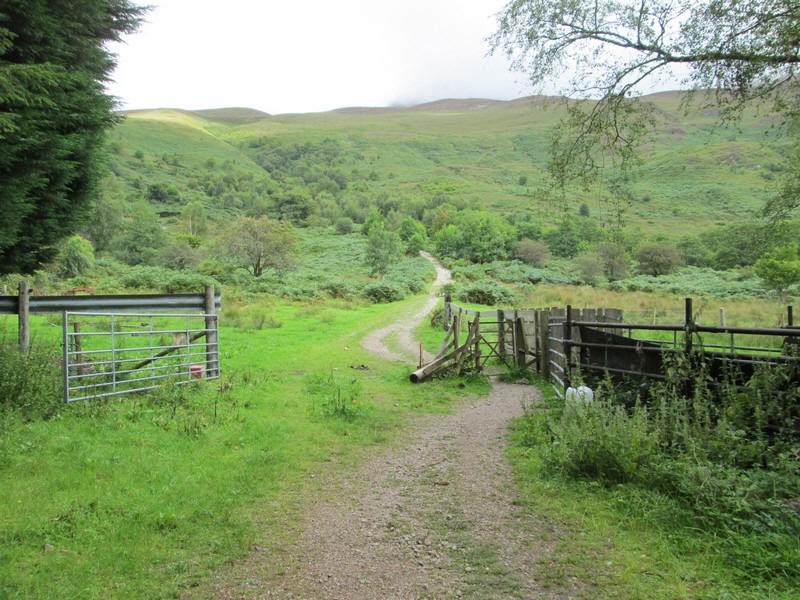 After passing a small car park the way to the Pap heads uphill at this gate...