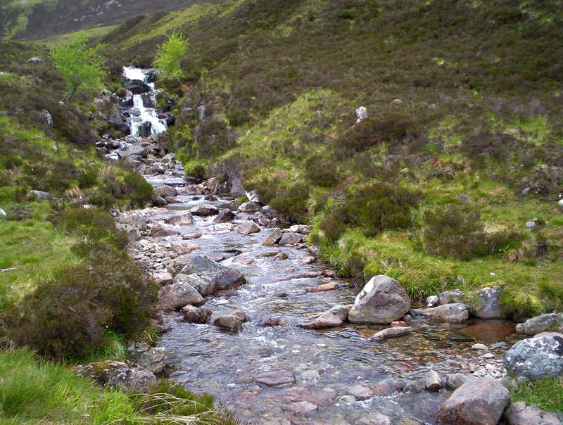 Descending Binnein Beag over the stony ground and scree needed a bit of care but it was then a case of downhill to the Allt Choire a Bhinnein....